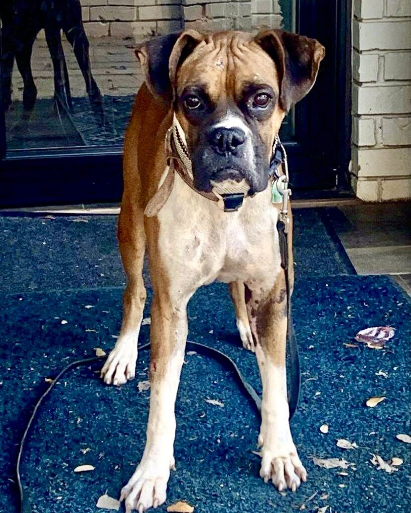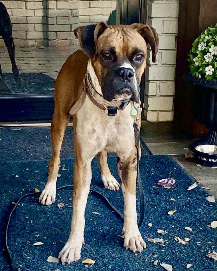 Found thin and covered in wounds on the street, Chance clearly endured tough times but his boxer spirit is intact. Since the moment he was found, Chance has been wagging his nub, smothering everyone with kisses and oh so grateful for his foster family.💋
