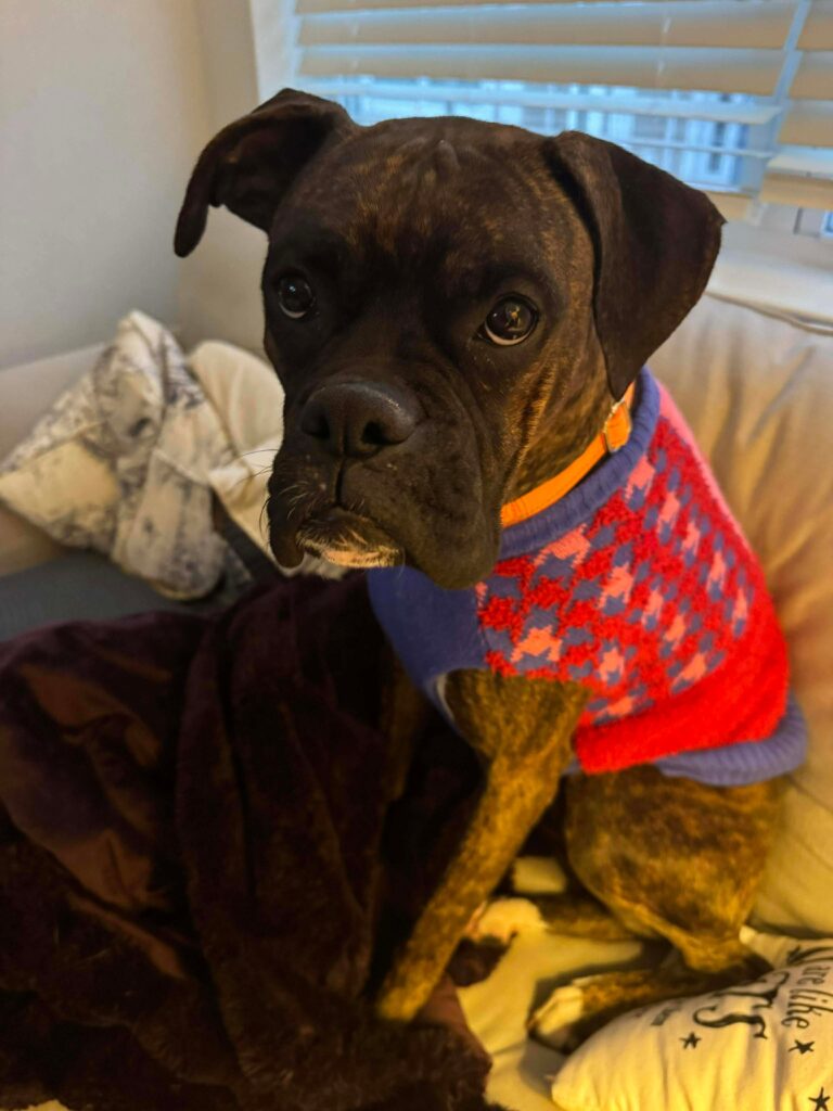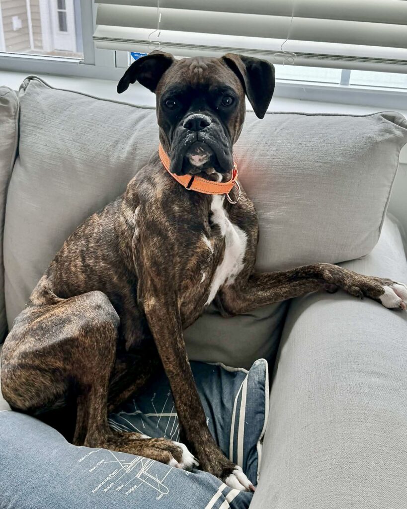 This 2-year-old brindle Boxer beauty is settling into a foster home in CT… and she’s taking it all in one brave step at a time.