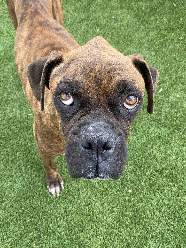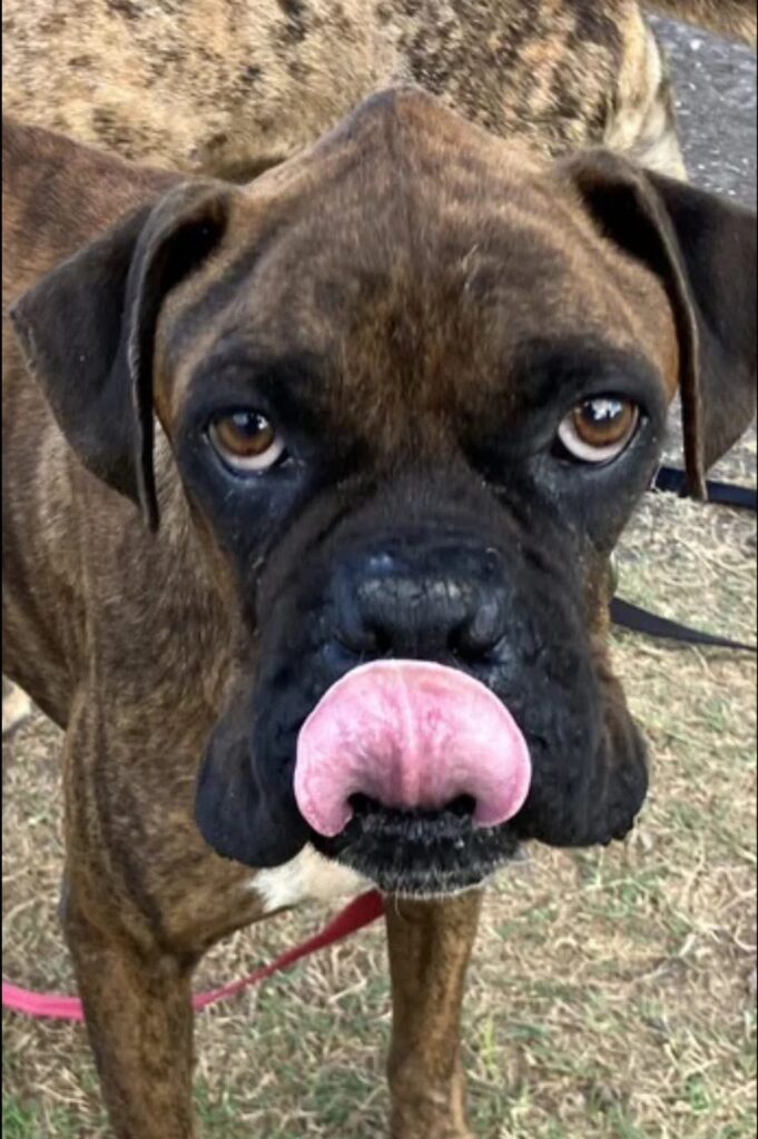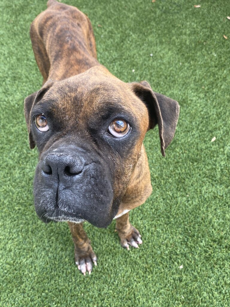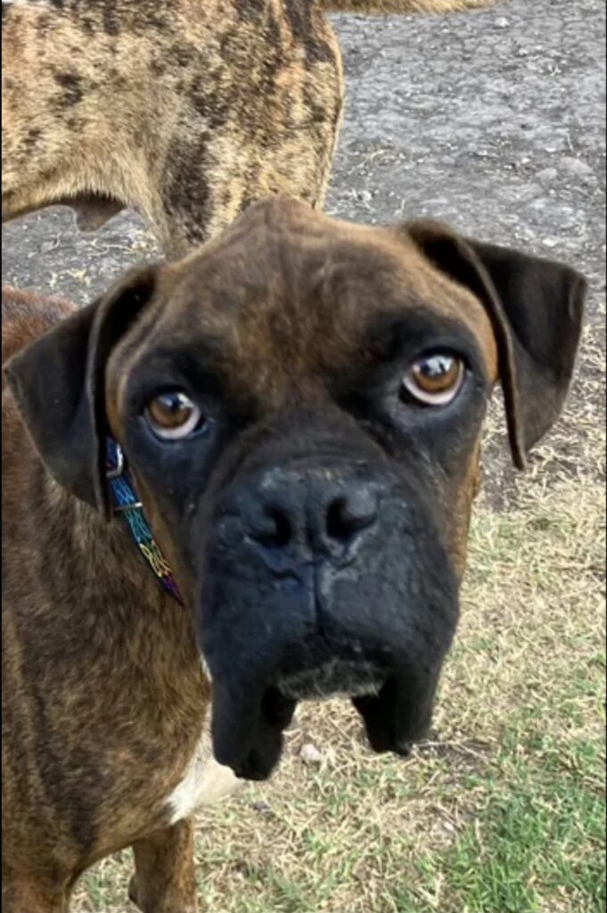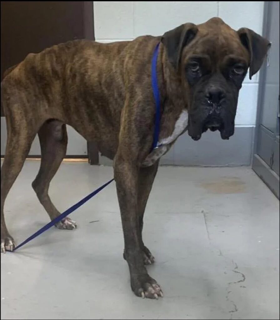 This soulful 6-year-old came to @chelseashopeboxerrescue from a cruelty case, but