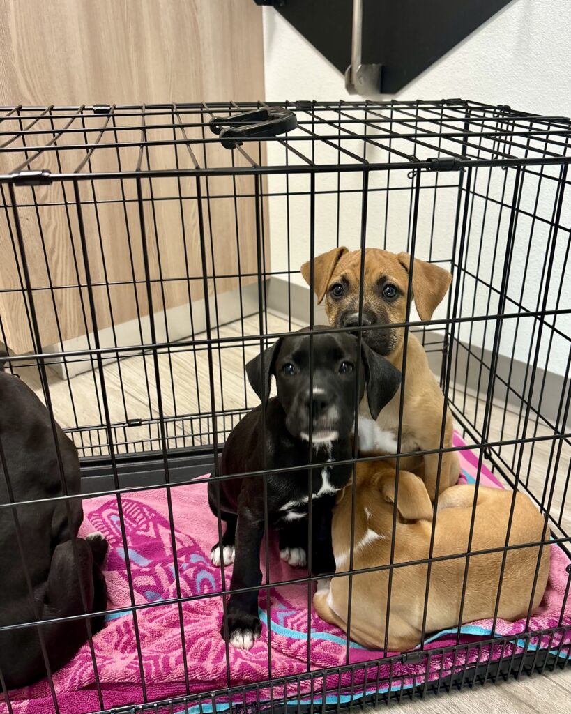 Mama Nina is a boxer, but Dad’s identity is a mystery — all we know is he must have been a real charmer, because these 5 babies are absolutely irresistible. 💖