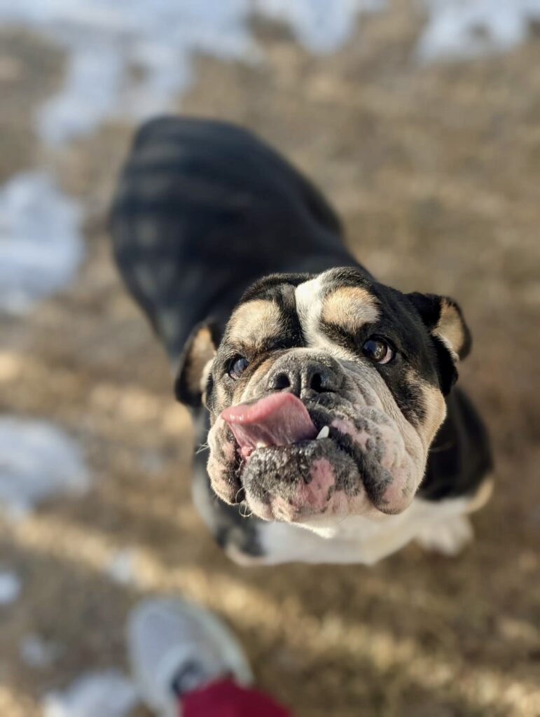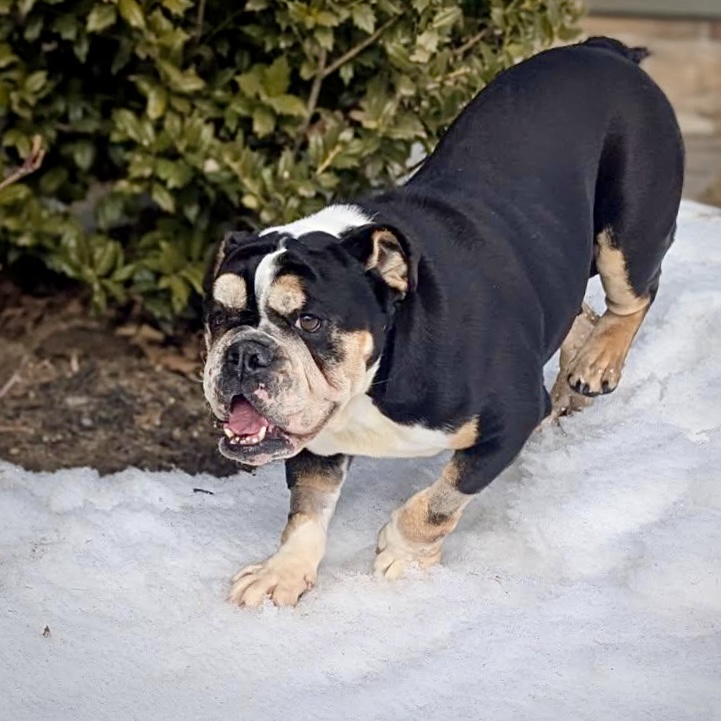 This sweet bulldog mama is still in boarding, but she’s soaking up every minute of her brand-new life after leaving the puppy mill behind. Snickers is a 4-year-old, tricolor English Bulldog who spent years being used for profit — and now it’s her turn to be someone’s baby.