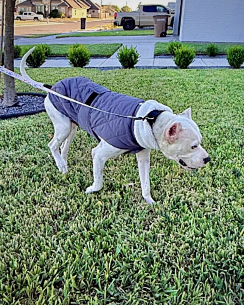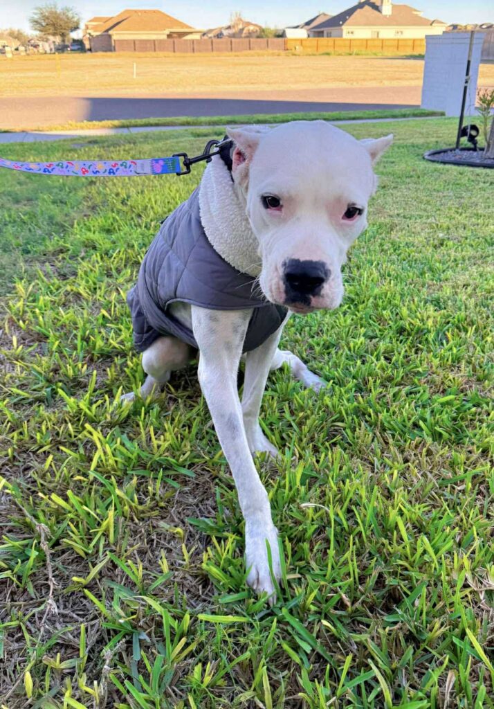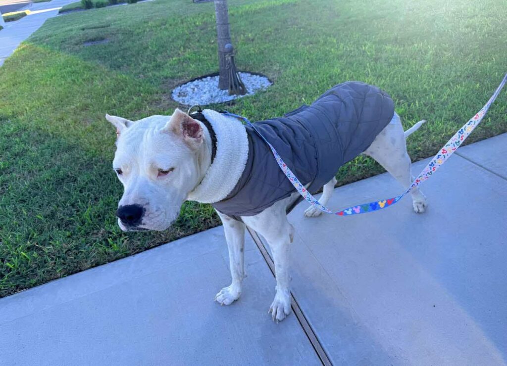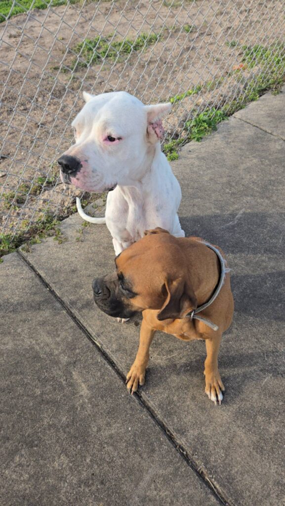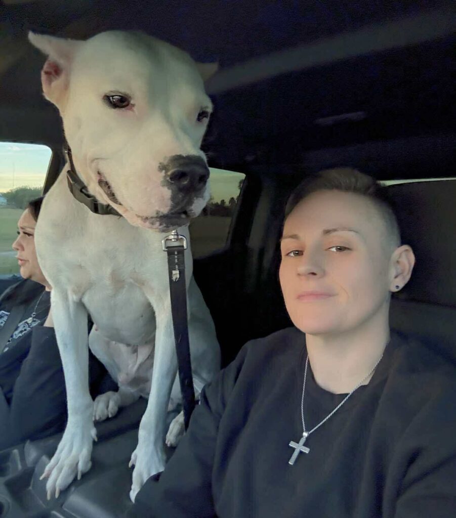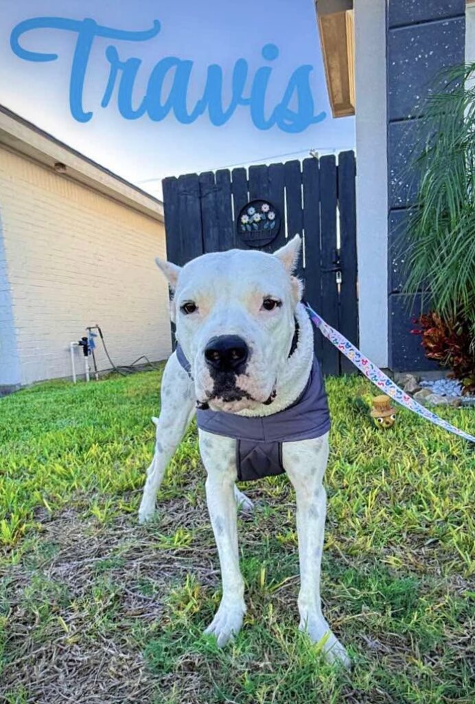 Travis is a 75-lb Dogo Argentino, a total giant mush who leans into love and reassurance.