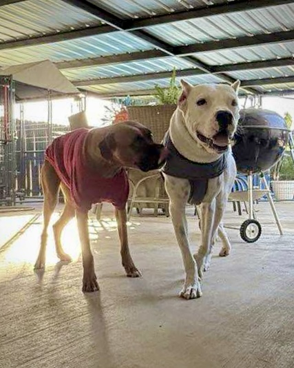 They are currently in boarding with other dogs and do fine socially β but they do not cope well when separated from each other.
