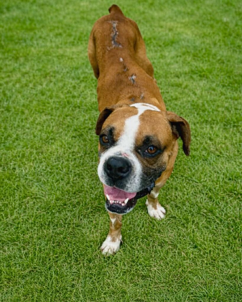 Tucker carries a visible piece of his past—a long scar down his back that’s still healing and missing some fur. We don’t know what he’s been through, but we do know it didn’t take away his gentle, easygoing nature. At the vet, he was a rockstar with both people and other dogs. No drama, no fuss… just a really good dog who’s ready to belong somewhere. A home where the only thing he has to worry about is which comfy spot to nap in next.