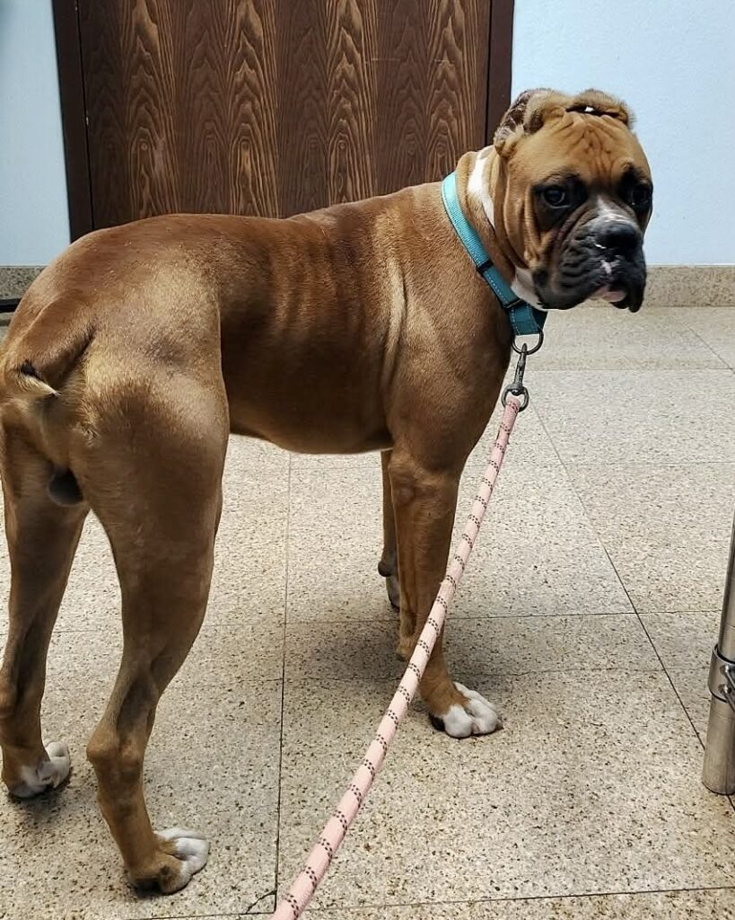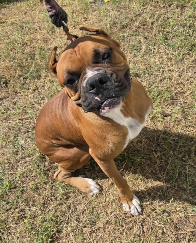 Vinny was lucky to escape a lonely life as an outdoor dog. They didn’t care enough about his well-being to have him cropped and docked professionally – must’ve been incredibly painful. Vinny is 18 months old and a happy, friendly boy despite his rough start in life.