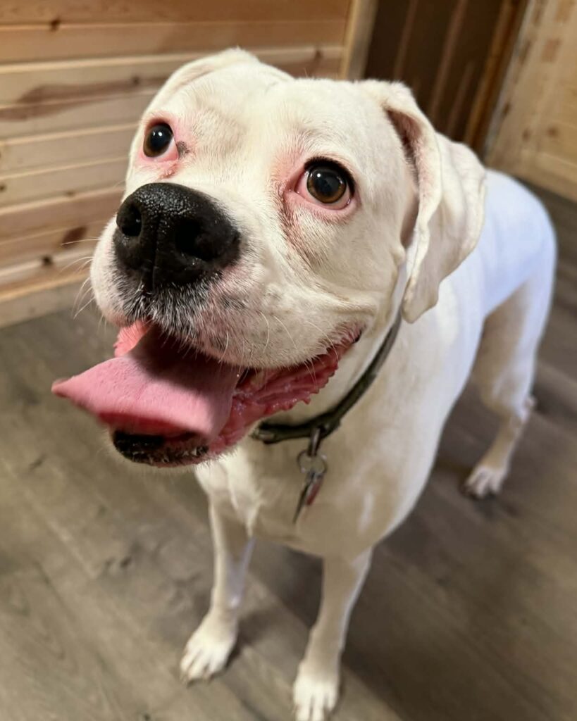 Zoie is deaf — but don’t let that fool you. She is smart, healthy, and completely in tune with her humans. A light leash tug gets her attention. She also reads your expressions and hand signals. She’s fully housebroken with zero accidents. Spayed. Vaccines up to date. Well cared for. She previously lived peacefully with other dogs.